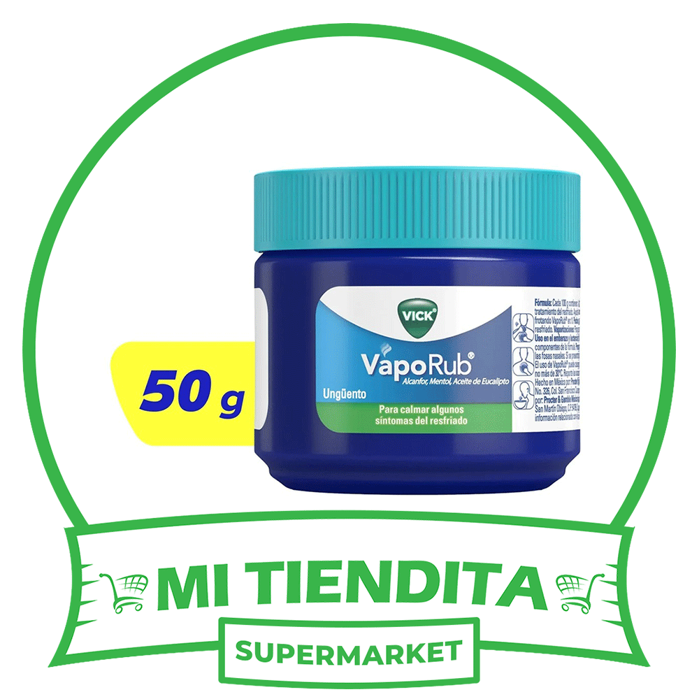 Vick VapoRub en formato de 50 g es un ungüento que proporciona un alivio efectivo para la congestión nasal. Su fórmula con mentol y eucalipto ayuda a respirar mejor, aliviando la incomodidad asociada a los resfriados y alergias. La presentación más grande